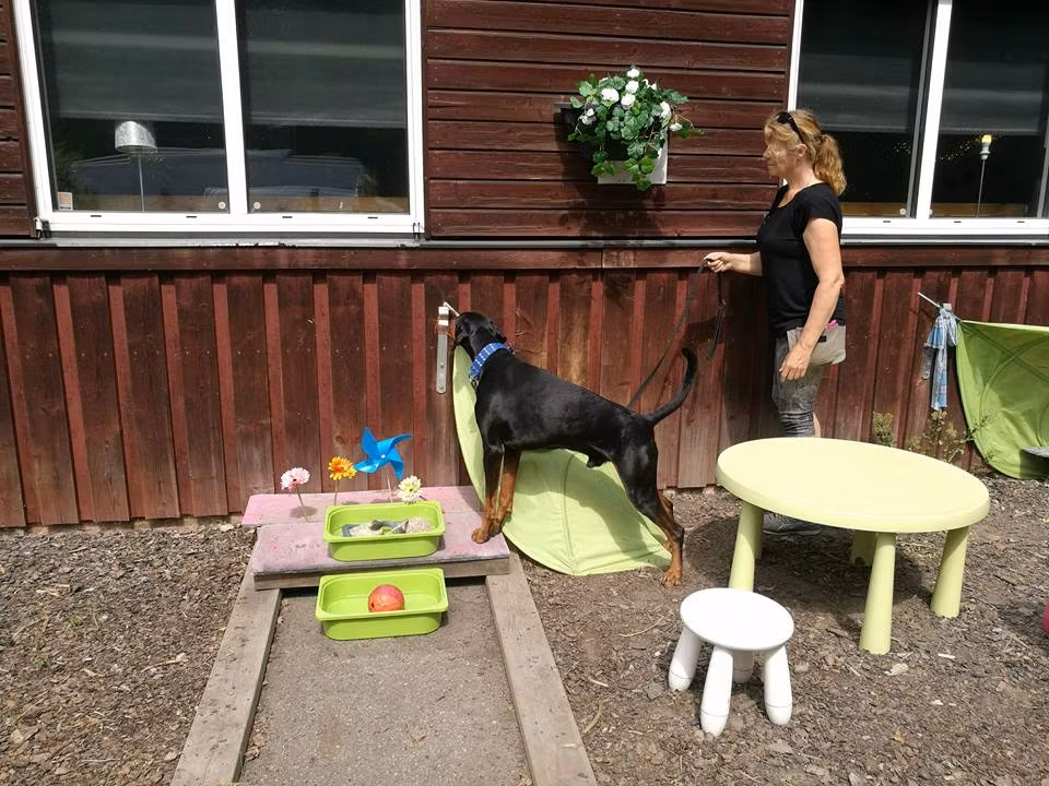I träningsgruppen träffas vi och tränar NoseWork tillsammans med instruktör.
